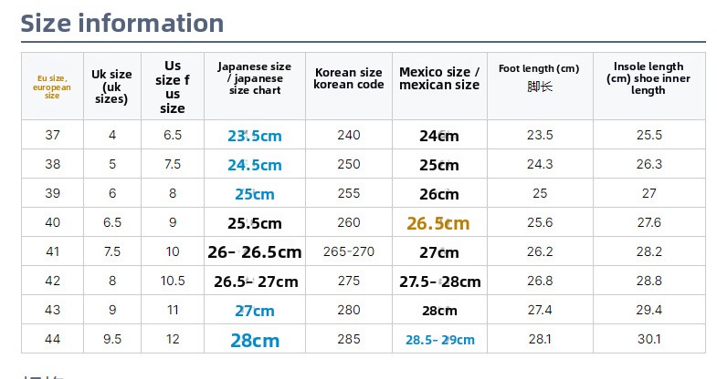 Sizes: 37, 38, 39, 40, 41, 42, 43, 44